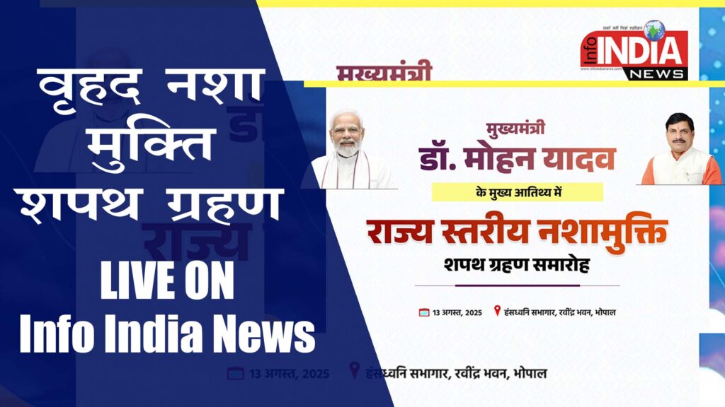 Info India News I मुख्यमंत्री डॉ. मोहन यादव की उपस्थिति में रवीन्द्र भवन, भोपाल में आयोजित राज्य स्तरीय वृहद नशा मुक्ति शपथ ग्रहण समारोह LIVE