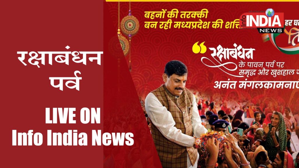 Info India News I रक्षाबंधन या जिसको राखी का त्यौहार भी बोला जाता है] यह एक हिंदू त्योहार है] और यह त्यौहार दो शब्दों रक्षा और बंधन से मिलकर बना है] आप हमारा यह एक्सक्लूसिव प्रोग्राम तनिष्का शर्मा, एंकर (इन्फो…