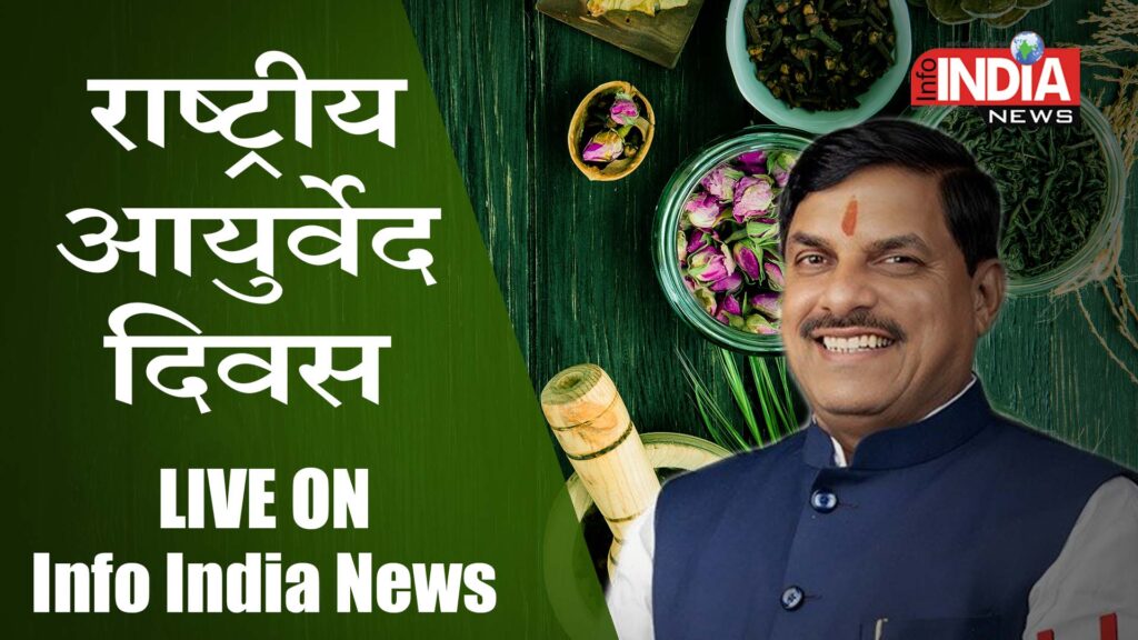 Info India News I मुख्यमंत्री डॉ. मोहन यादव की उपस्थिति में ’10वें राष्ट्रीय आयुर्वेद दिवस’ के अवसर पर कुशाभाऊ ठाकरे सभागार, भोपाल आयोजित राज्य स्तरीय कार्यक्रम LIVE