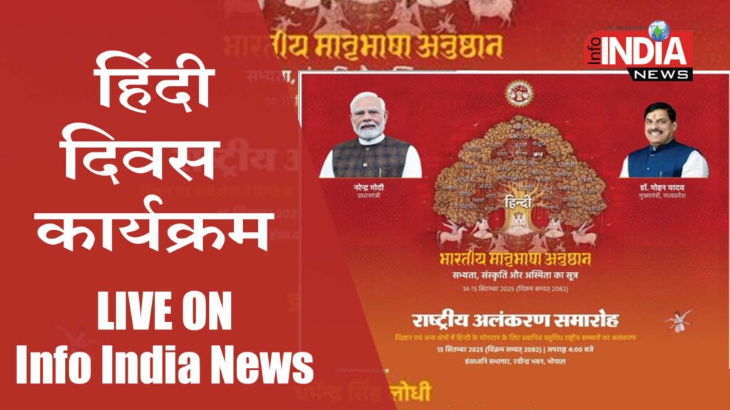 Info India News I मुख्यमंत्री डॉ. मोहन यादव की उपथिति में रवींद्र भवन, भोपाल में आयोजित हिंदी दिवस कार्यक्रम ‘भारतीय मातृभाषा अनुष्ठान’ LIVE