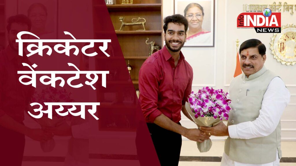 Info India News I मुख्यमंत्री डॉ. यादव से क्रिकेटर वेंकटेश अय्यर ने की सौजन्य भेंट