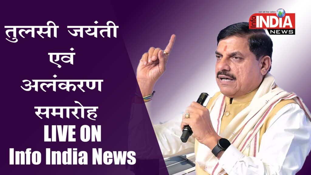 MP-तुलसी जयंती August 1, 2025 Editorमध्य प्रदेश Info India News I LIVE I मुख्यमंत्री डॉ. मोहन यादव के उपस्थिति में भोपाल में आयोजित तुलसी जयंती एवं अलंकरण समारोह LIVE