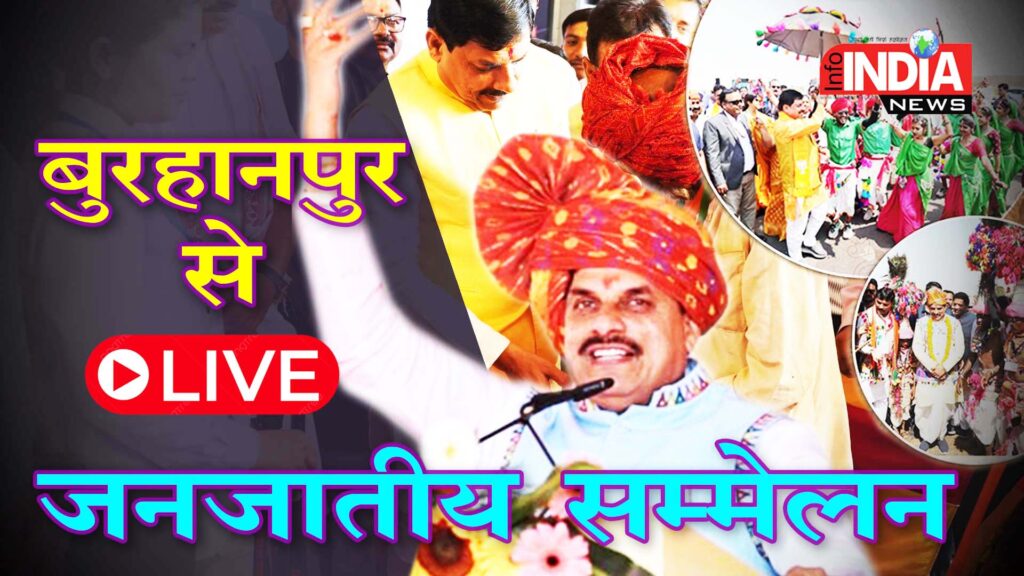 Info India News I मुख्यमंत्री डॉ. मोहन यादव की उपस्थिति में नेपानगर, जिला बुरहानपुर में आयोजित जनजातीय सम्मेलन में विभिन्न विकास कार्यों का लोकार्पण एवं भूमिपूजन कार्यक्रम