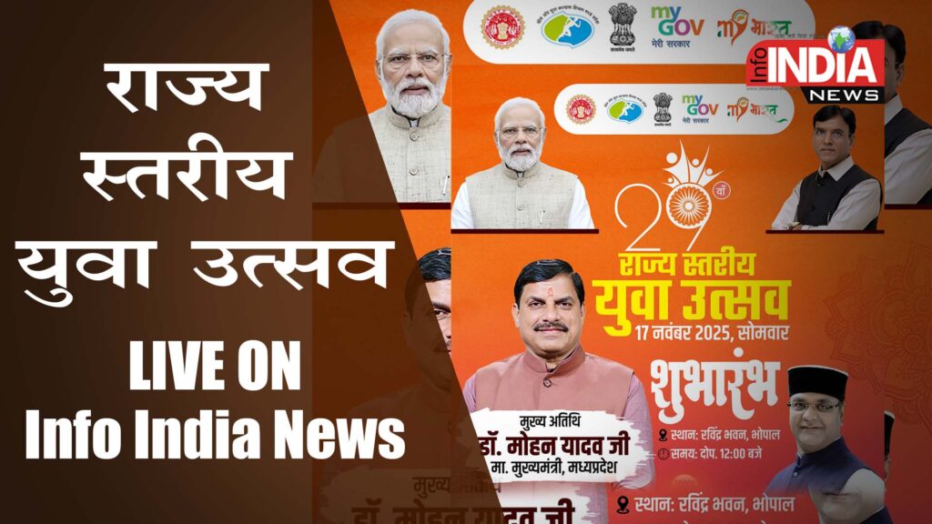 Info India News I मुख्यमंत्री डॉ. मोहन यादव की उपस्थिति में रवीन्द्र भवन, भोपाल में आयोजित 29वें राज्य स्तरीय युवा उत्सव का शुभारंभ कार्यक्रम LIVE